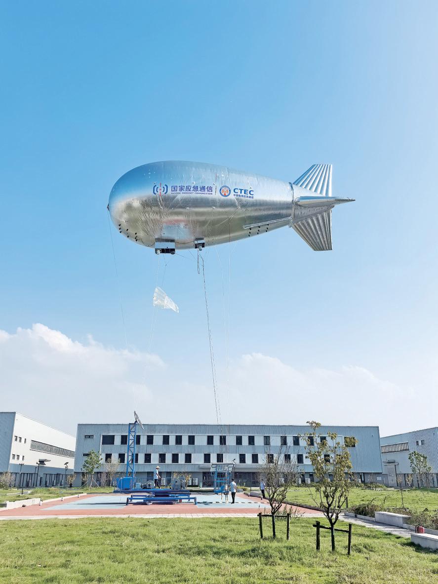 多种形态的无人机等新技术新装备各自身怀“绝技”,为抢险救灾中的信号畅通贡献科技力量。图为2025年12月11日举办的“通信使命-2025”国家应急通信应对低温雨雪冰冻灾害专题演练中展示的高空系留式飞艇,一次升空可持续工作15天以上,实现不间断空中监控与通信传输,是抢险救灾中的“空中指挥眼”“传输中继站”。